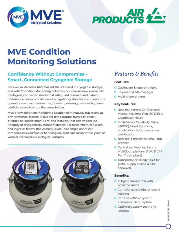 - MVECloud & App: A secure, FDA 21 CFR Part 11 compliant platform providing dashboards, alerts, and reporting